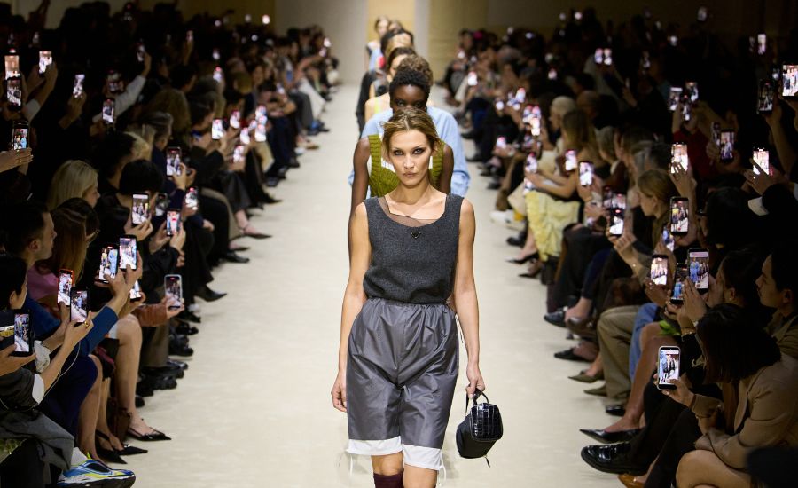 Bella Hadid lief in Mailand das erste Mal für Prada – und präsentierte gleich 4 Looks. Fotos: launchmetrics.com/spotlight